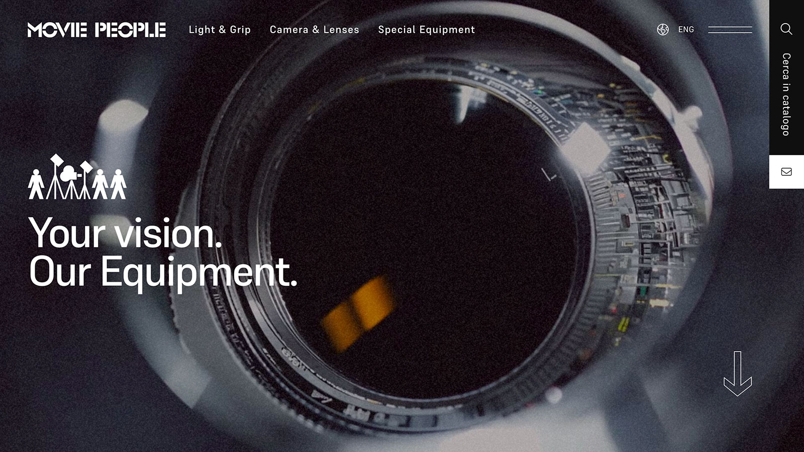 Oltre al design, arricchiamo l’esperienza con interazioni animate e, su richiesta, effetti dinamici allo scroll. Un esempio? La home di Movie People, azienda di noleggio attrezzature cinematografiche, dove abbiamo realizzato un visual fluido e coinvolgente che si sviluppa lungo tutta la pagina.